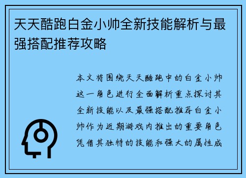 文章摘要:本文详细分析了原神满命角色造价,从角色属性、技能效果、装备选择和团队搭配四个方面入手,剖析了如何最大化满命角色的潜力与战斗价值。通过深入的解析,读者可以更好地了解满命角色的优势与劣势,为玩家...